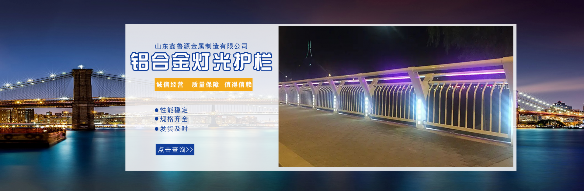 山東鑫魯源金屬制造有限公司主要經(jīng)營(yíng):鋁合金橋梁護(hù)欄,鋁合金防撞護(hù)欄,鋁合金橋梁防撞護(hù)欄,鋁合金燈光護(hù)欄,不鋁合金橋梁護(hù)欄廠家,環(huán)波梁橋梁護(hù)欄,環(huán)波梁防撞護(hù)欄。質(zhì)量可靠、經(jīng)濟(jì)實(shí)用的顯著特點(diǎn)。公司為客戶提供可靠售后保障,堅(jiān)持“以品質(zhì)立足、服務(wù)求發(fā)展”,愿與各界朋友精誠(chéng)合作、攜手發(fā)展!  服務(wù)優(yōu)勢(shì):真誠(chéng)的服務(wù)理念、完善的服務(wù)體系。公司專業(yè)力量充足;工程案例眾多、從業(yè)經(jīng)驗(yàn)豐富;公司以可靠質(zhì)量的產(chǎn)品,合理的價(jià)格,完善的售后服務(wù),能夠滿足市場(chǎng)各個(gè)企業(yè)的需求。  企業(yè)精神:執(zhí)著追求 持續(xù)創(chuàng)新執(zhí)著追求,就是堅(jiān)持不懈、堅(jiān)定從容,專注于自己的事業(yè),把能做的事情做好,不斷克服困難、把握機(jī)遇,贏得未來(lái)。  持續(xù)創(chuàng)新,就是生命不息、創(chuàng)新不止,通過(guò)持續(xù)實(shí)施技術(shù)創(chuàng)新、管理創(chuàng)新、市場(chǎng)創(chuàng)新,獲取持續(xù)的競(jìng)爭(zhēng)優(yōu)勢(shì)。...